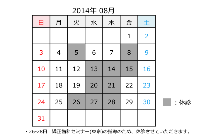 8月の診療日、休診日のお知らせです。